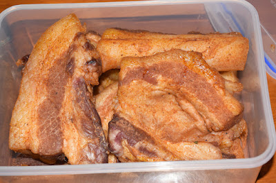4. 腌制2-3天后把五花肉放在食品烘干机上,70°C烤大约4小时即可。